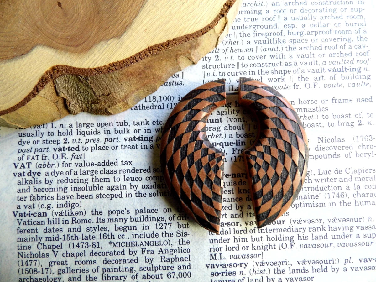 This is an organic natural product, which has been hand turned, then hand finished and/or hand engraved so the earrings can vary slightly from the picture due to these factors. Colour shades can also vary slightly, depending on your monitor